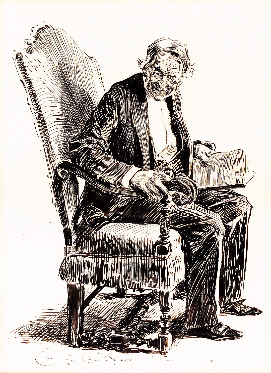 Y en ese momento, se dieron cuenta de que sentado en un sillón, en el salón, había un anciano vestido de negro que emitía pequeños gruñidos y gemidos.