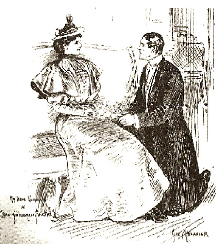 Respondiendo la joven que no tiene tiempo de hacer tal cosa, pero lo invita a entrar con ella a la casa, hasta ahora la conversación se ha mantenido en el confortable patio.