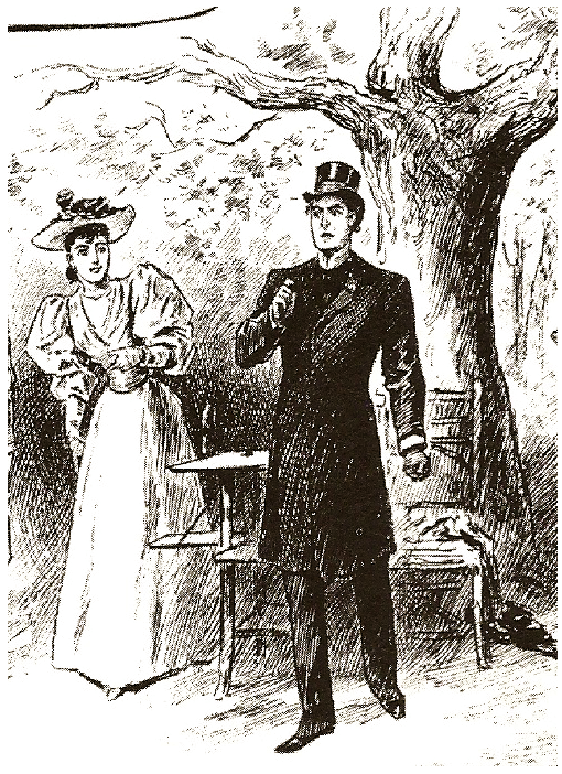 Cecily explica el malentendido: El hombre al cual Gwendolen abraza y con el cual va a casarse no se llama Ernest, sino Jack Worthing.