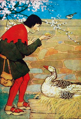 Había una vez un campesino que poseía la oca más maravillosa que se pueda imaginar, porque cada día que visitaba el nido, la oca había puesto un hermoso y brillante huevo de oro.