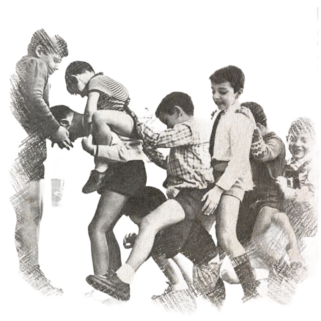 —¡PATAPLAF! —el chico no pudo con los dos cargados en su espalda, y no hizo falta que saltaran los otros tres. En este caso, se dio por perdido al equipo que recibía a los saltadores y volvieron a empezar.