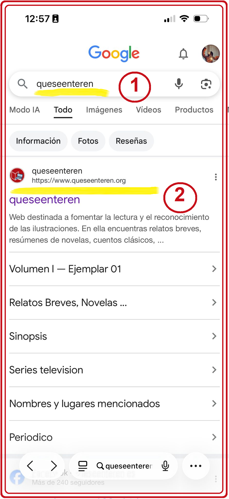 3/ ESCRIBIMOS EN SU VENTANA DE BUSQUEDA, EL NOMBRE DE NUESTRA WEB: