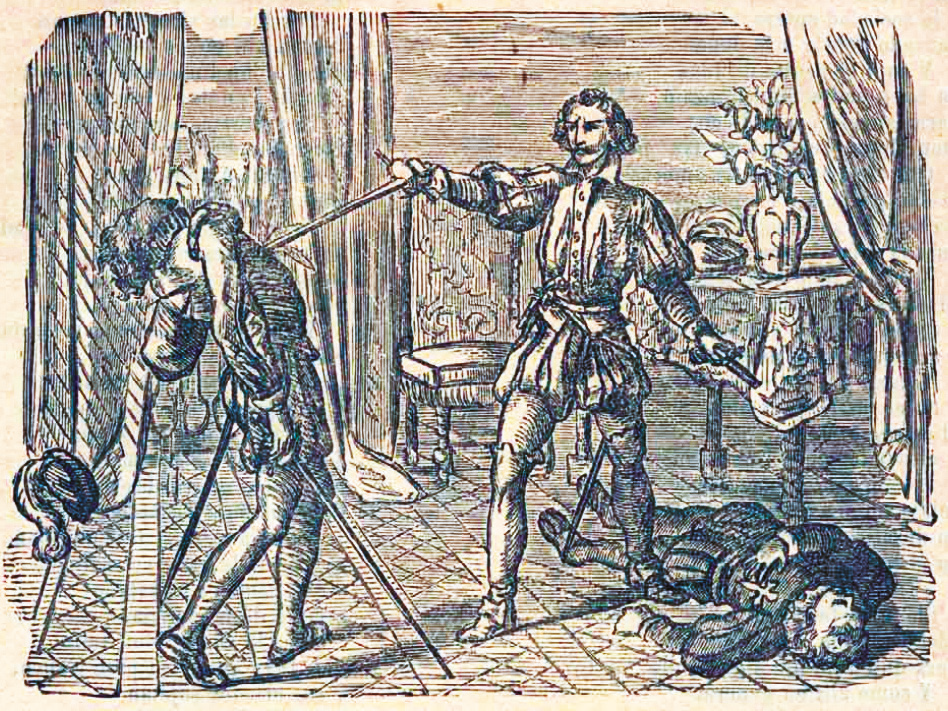 En ese momento, don Luis los sorprende con una carcajada, y acusa a don Juan de humillarse en un momento apremiante a falta de valor. Este, enfurecido, le dispara a don Gonzalo y le da una estocada a don Luis. Ambos mueren inmediatamente.