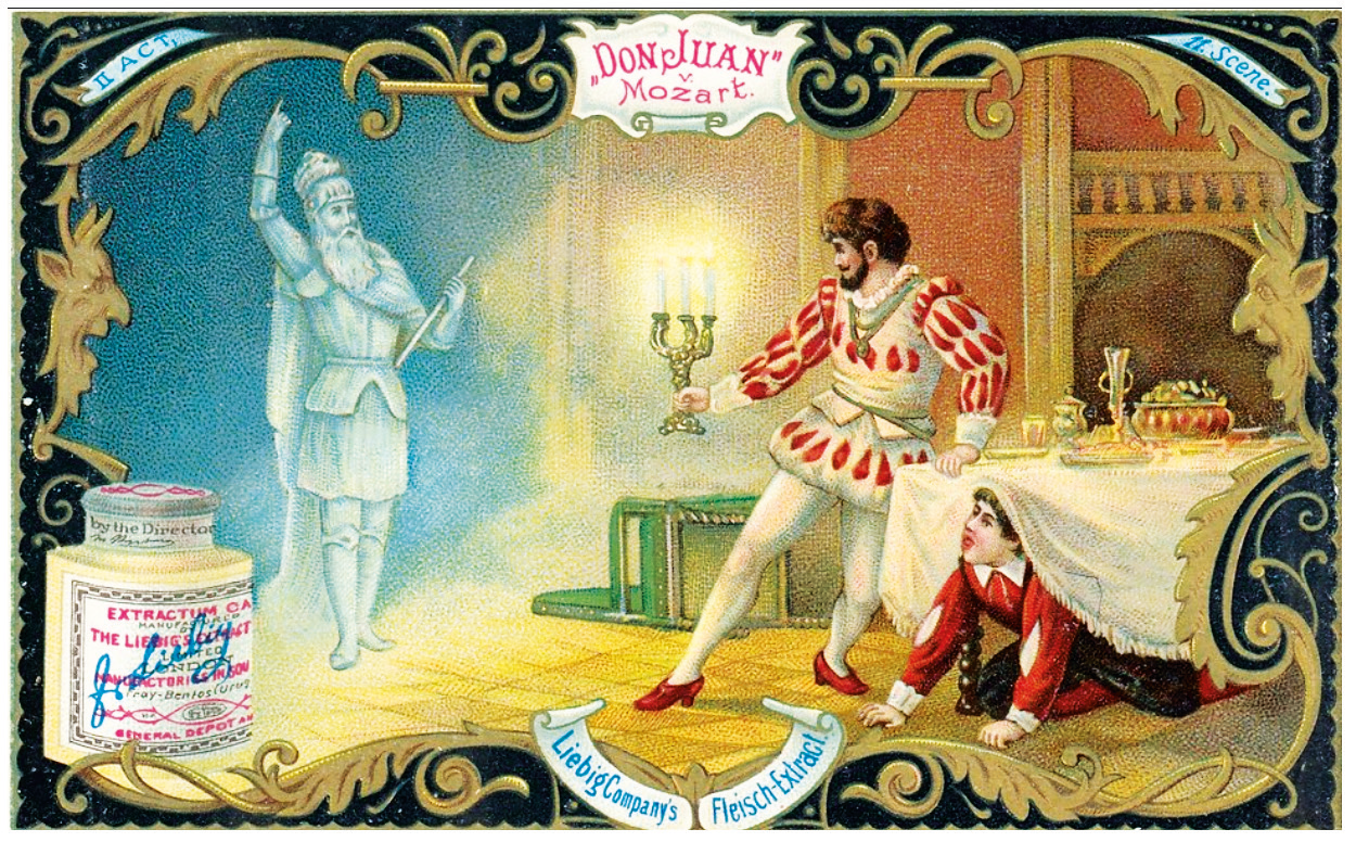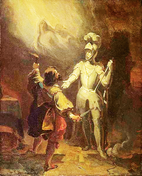 La estatua del comendador le ofrece una copa de fuego y un plato de ceniza, diciéndole “Te doy lo que tú serás”.