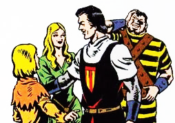 En sus aventuras está acompañado por sus fieles compañeros: el astuto adolescente Crispín y el enorme goloso Goliat.