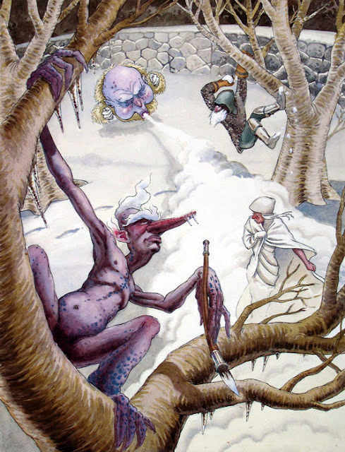 Así pues, siempre era invierno en casa del gigante, y el Viento del Norte, el Hielo, el Granizo y la Nieve danzaban entre los árboles.