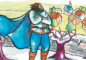 Y llegó el Granizo. Cada día durante tres horas tocaba el tambor sobre el tejado del castillo, hasta que rompió la mayoría de las pizarras, y entonces se puso a dar vueltas alrededor del jardín corriendo lo más veloz que pudo. Vestía de gris y su aliento era como el hielo...