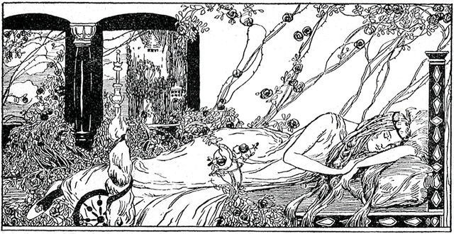 Nota: En esta versión “Charles Perrault” suavizo este “trozo” variando lo que sucedió según nos cuenta “Giambattista Basile”, en su cuento que sirvió de fuente a “Perrault”, bajo el título “Sol, Luna y Talía”, cosa que veremos un poco más adelante.