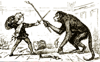 El mayordomo no replicó porque ya tenía formado el propósito de engañarla como la otra vez. Fue en busca del niño y lo halló con un diminuto florete en la mano ensayándose en la esgrima con un mono, a pesar de que sólo tenía tres años.
