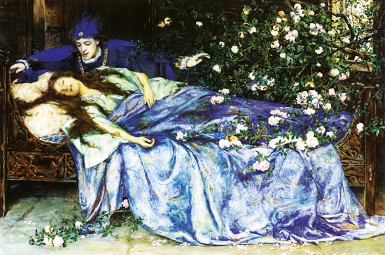 Y en otro relato más, datado en fechas similares y conocido como “Blandín de Cornualles”. En este caso la pareja la componen “ Blandín” y la durmiente “Brianda”.
