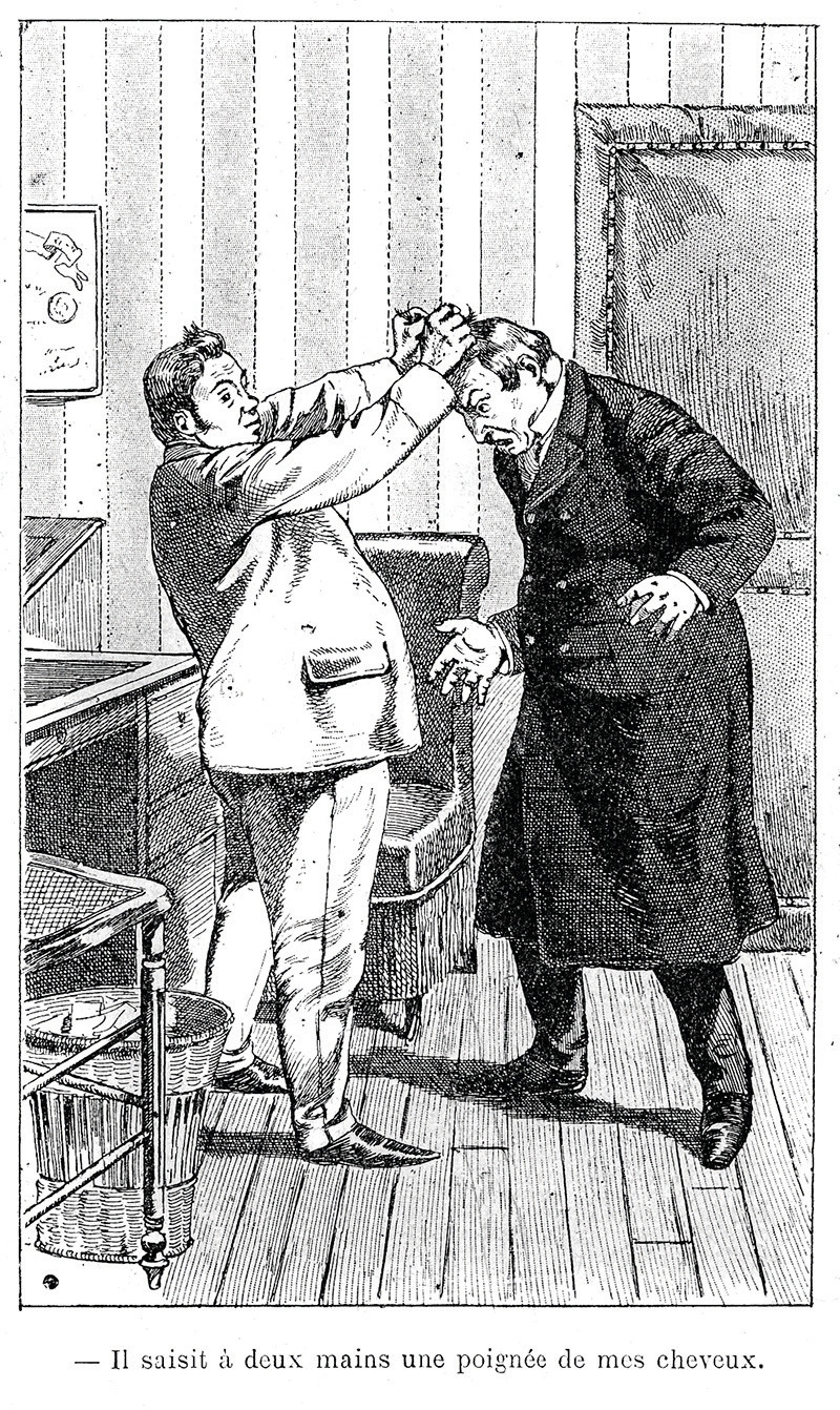 Y acto continuo me agarró del pelo con ambas manos, y tiró hasta hacerme gritar de dolor.