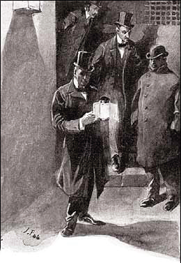 —Le esperan tres hombres a la puerta —le dijo Holmes.