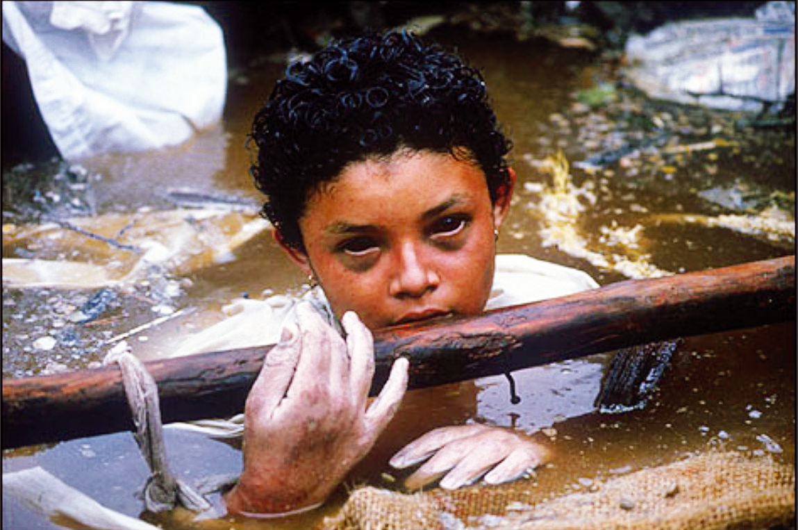"La muerte" retransmitida en directo por la televisión, nos hizo vivir el sufrimiento y la valentía de la niña Omayra Sánchez Garzón, atrapada 3 días en el lodo (1985).