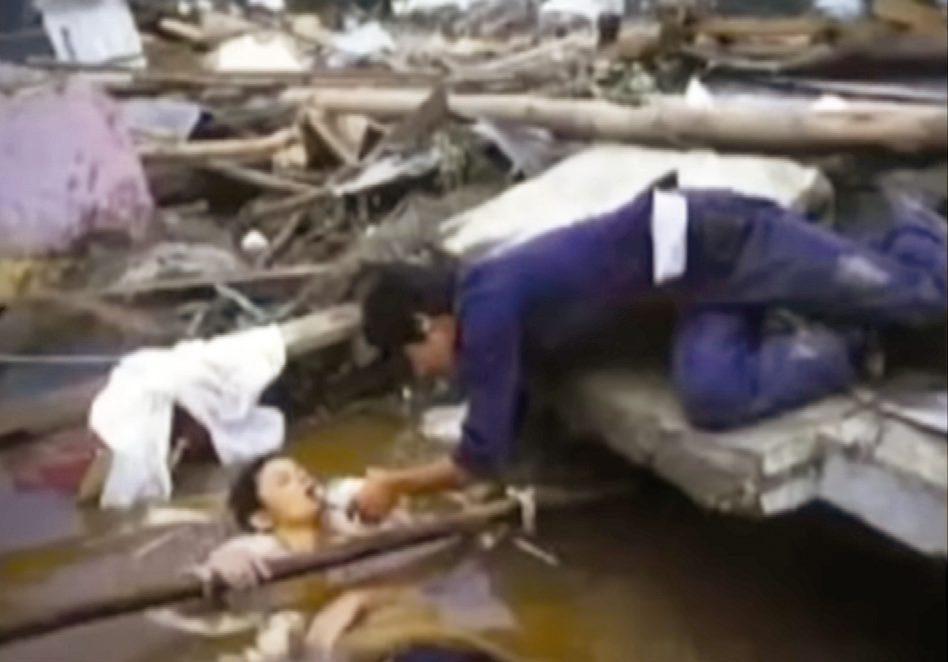 Durante las primeras horas después del flujo de lodo, estuvo cubierta de "concreto" (mezcla de piedras, arena, agua y cemento usado en la construcción), pero metió la mano por una grieta entre los escombros. Después de que un rescatista notó que su mano sobresalía de un montón de escombros, él y otros limpiaron tejas y madera durante el transcurso de un día.