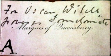 El 18 de febrero de 1895, el marqués de Queensberry dejó su tarjeta de visita en el club de Wilde, el “Albemarle”, con la inscripción: “Para Oscar Wilde, posando sodomita” (traducción literal).