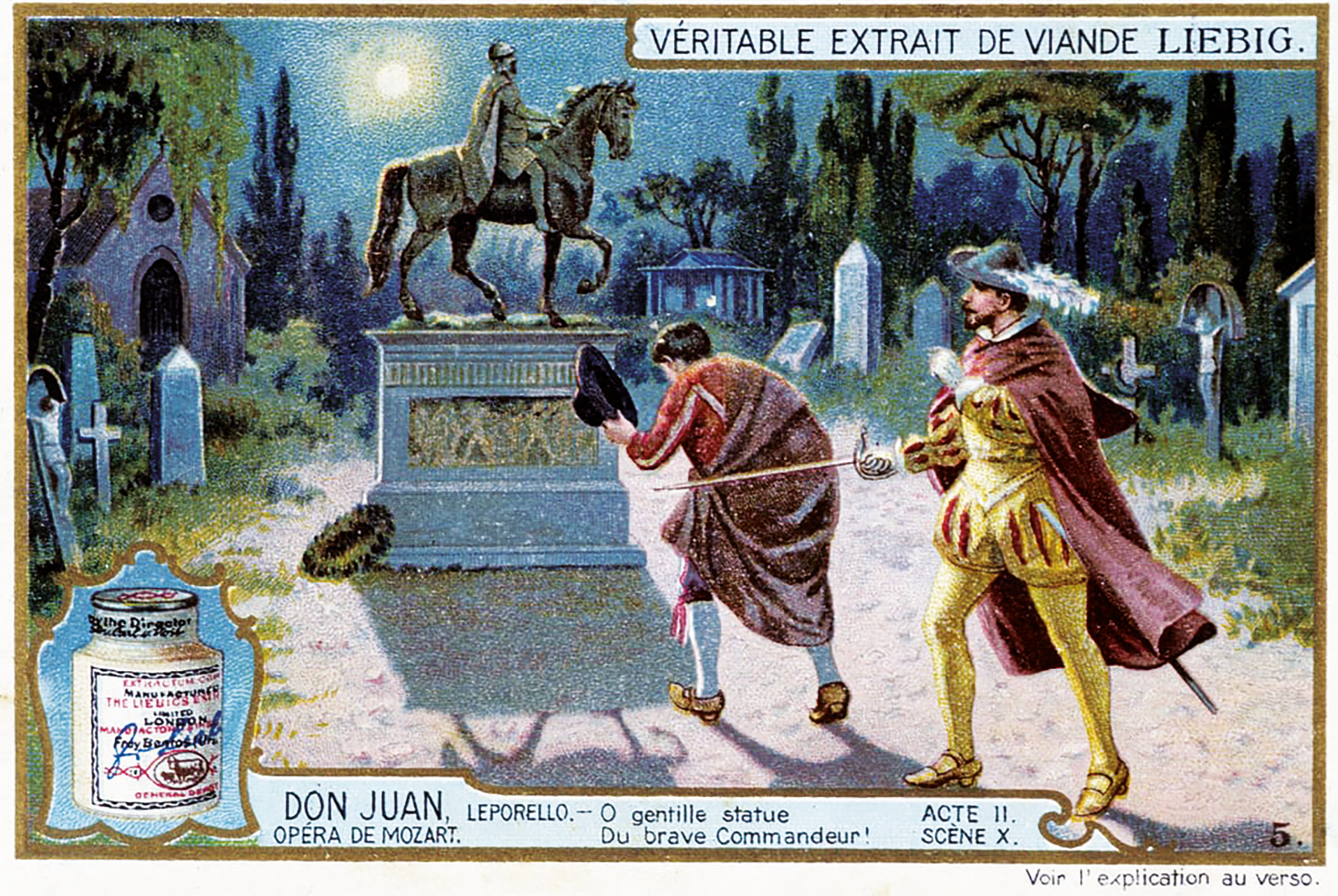Ven la tumba de Don Gonzalo, y Don Juan, en broma, invita a la estatua de la tumba a cenar con él y se ríe de que las apariciones y la venganza prometida aún no han llegado.