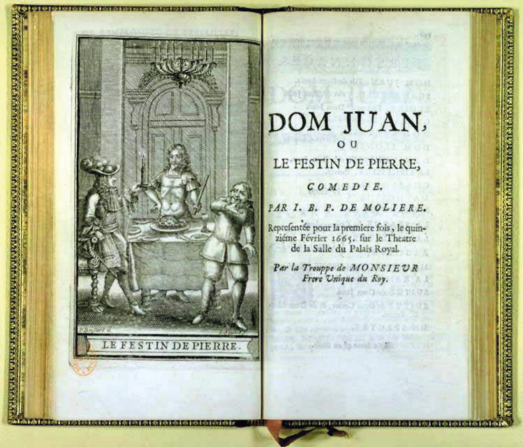 “Dom Juan ou le Festin de Pierre” (“Don Juan o La fiesta de la piedra”), es una comedia en cinco actos escrita por Jean-Baptiste Poquelin, conocido por su nombre artístico de “Molière”; dramaturgo, actor y poeta francés, considerado uno de los grandes escritores de la lengua francesa y de la literatura mundial.