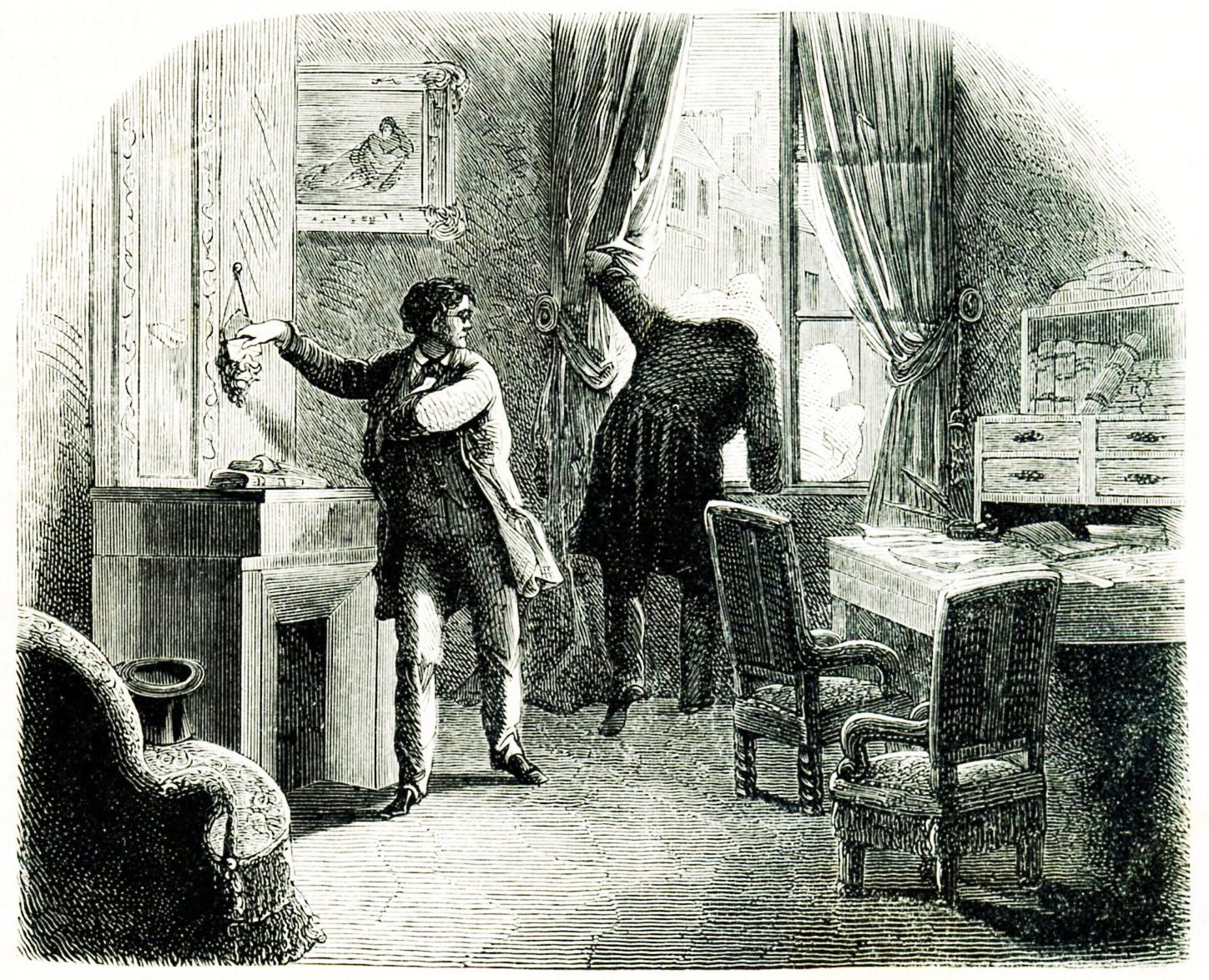 —Tened al alcance vuestras pistolas —dijo Dupín—; pero no hagáis uso de ellas ni las mostréis, sino cuando os dé la señal.