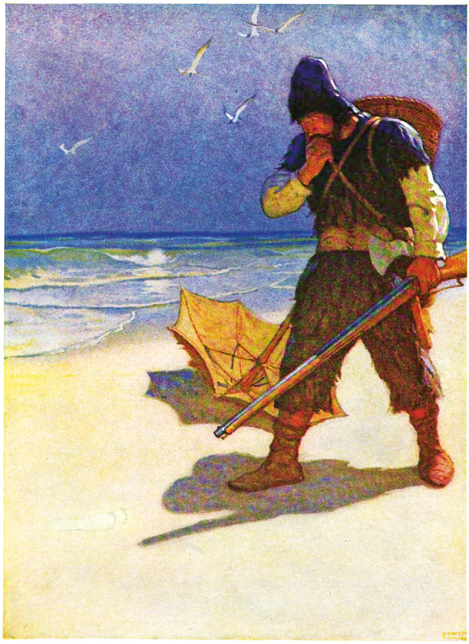 Con esta pinta hice mi nuevo viaje, y estuve fuera cinco o seis días. Me sorprendió muchísimo la huella del pie descalzo de un hombre en la orilla, que se podía ver claramente en la arena.