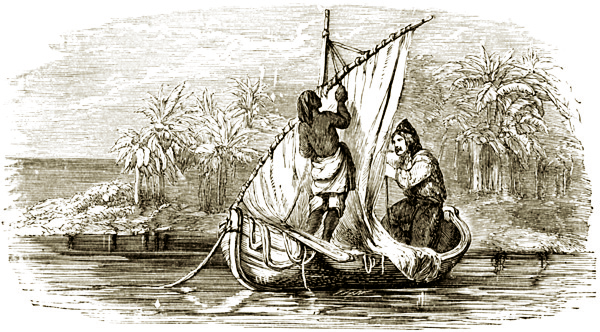 Hice tal vela, que antes del final del día estaba más allá de los dominios del Emperador de Marruecos. Sin embargo, tan terribles eran mis temores de volver a caer en manos de mi amo, que no quise detenerme para bajar a tierra hasta haber navegado de esa manera cinco días; y entonces el viento viró hacia el sur, y me aventuré a fondear en la desembocadura de un pequeño río.